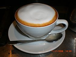 Traditionally, a cappuccino drink is made by topping a cup of coffee with scalded milk, resulting in a brown liquid with light brown crown.