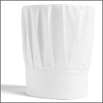 A Toque is the subject of the day. A chef’s hat is called a toque. The etiology of the word is French (actually it’s real root word is Spanish but the French made the name popular) and it means a cap with a small brim or no brim at all. The ones that chefs wear are actually called toque blanche. That means white hat with no brim. The question I always had was why white? and why white chef coats? All I can think of is spaghetti sauce all over the front. Which is how mine would be were I a chef. And the way I cook, I would probably have some on that brimless hat as well.