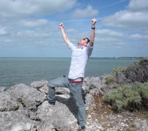 That area of my state is much different than where I live. It’s much more tropical. My son’s first impressions was that there were no trees there.  He’s right. The city is lovely with its palm trees but it can’t hold a candle to the panhandle with all the pines, oaks and lush vegetation. Here’s a picture of him on the beach-