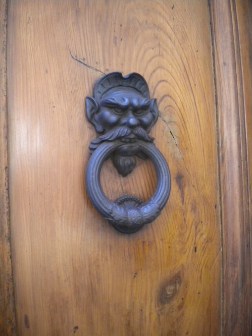 That is an awesome doorknocker…kind of makes me think of the ones on Labyrinth, the talking ones.