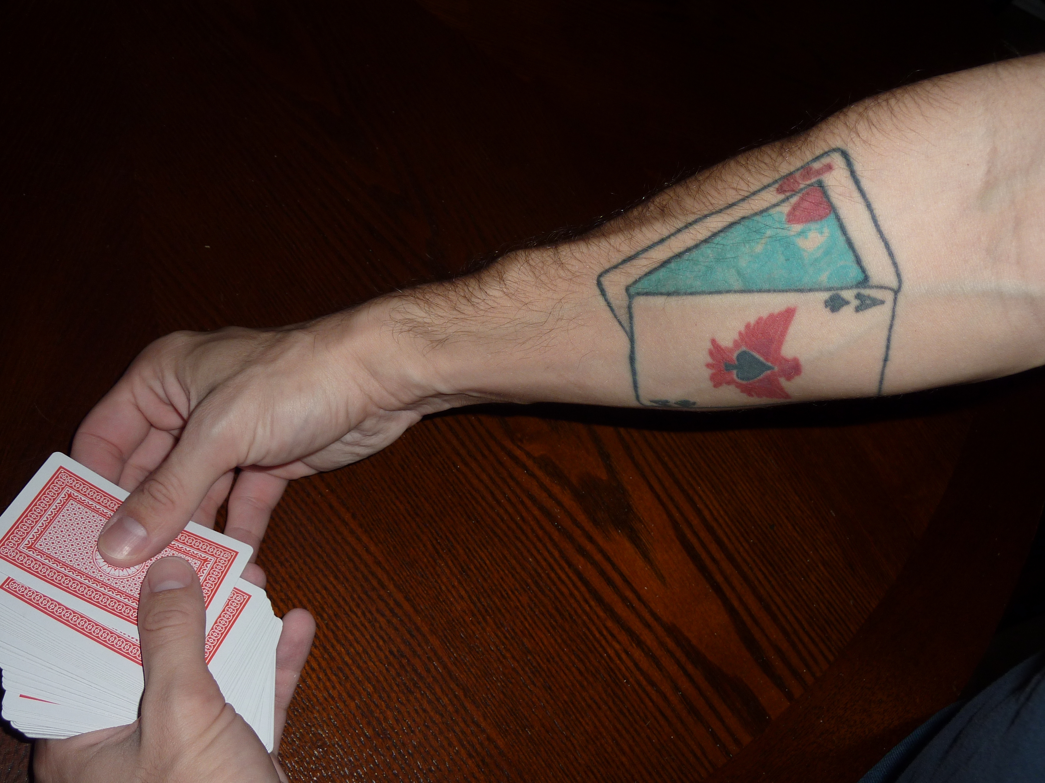 COOL! This is a friend’ husband (you know her)- his tattoo is actually because their child’s name is Jack, not because he’s a gambler. I love that.