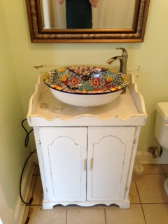 That sink looks AWESOME, Jillian! And the cabinet is the perfect pedestal for it. Well done! You’re going to smile every time you walk in or by it.