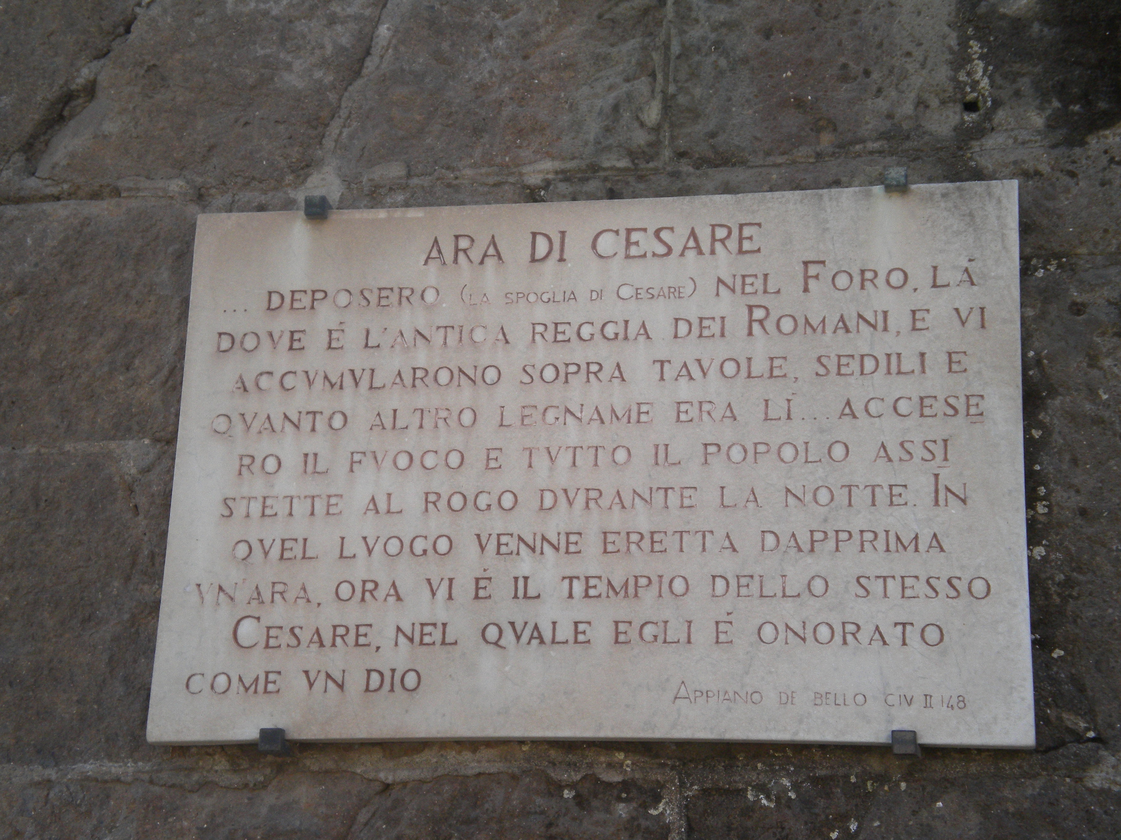 I have a picture of Julius’ marker in the forum in Rome attached here. It’s believed to be where he was cremated. People still leave flowers on it.