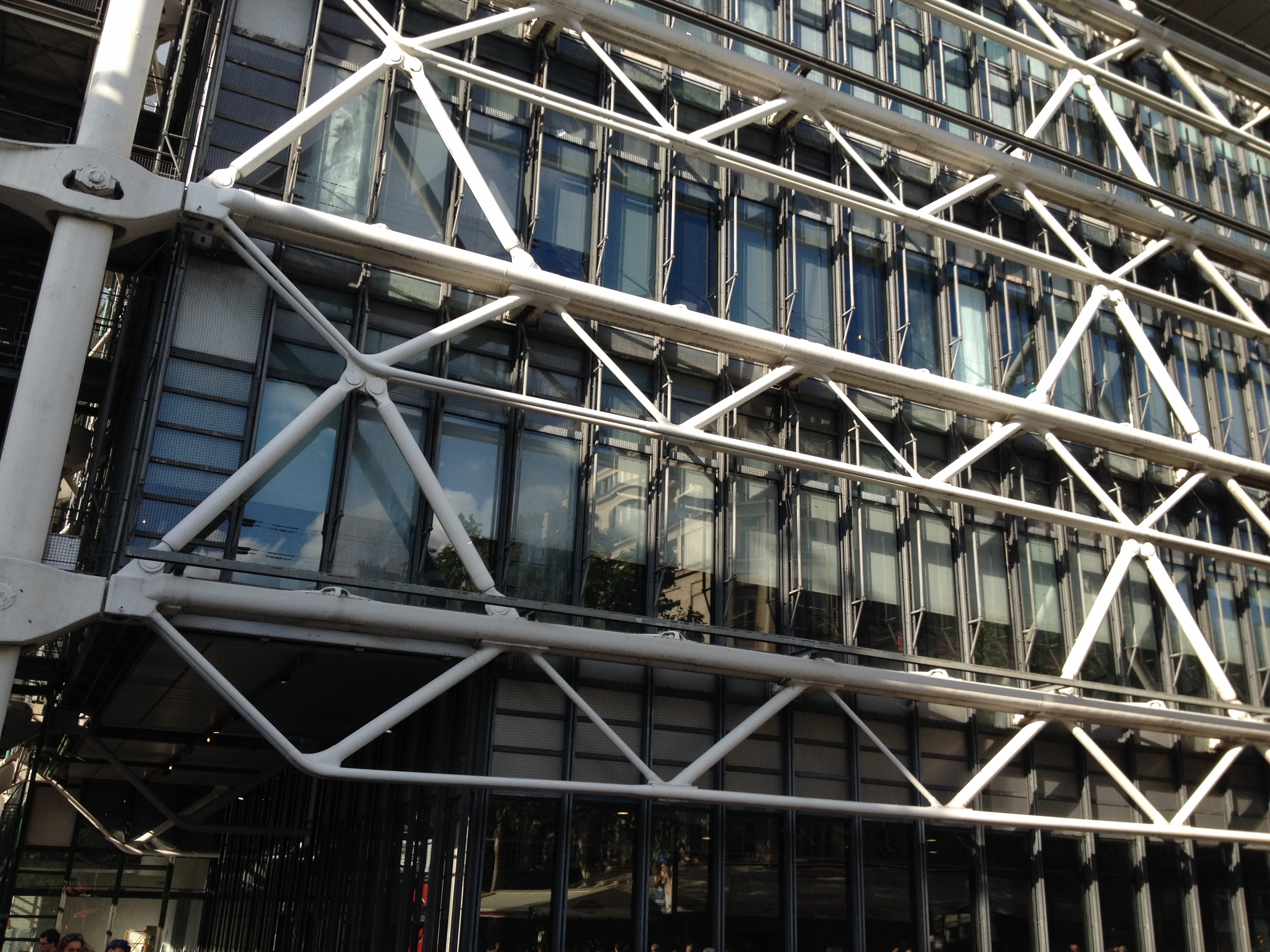 This is a museum of modern art in Paris. It is actually one of the largest in Europe and was designed by Renzo Piano, Richard Rogers and Gianfranco Franchini in the 1970s. It also has a library in it. The interesting thing about the design is that all of the necessary parts of the construction are on the outside frame of the building (like the pipes, mechanical parts, etc) to leave vast spaces inside for the art to be displayed. When it was first built, it was color coded with the green pipes being plumbing, the blue ducts were climate control, electrical wires were yellow and the safety devices and circulation devices were red.