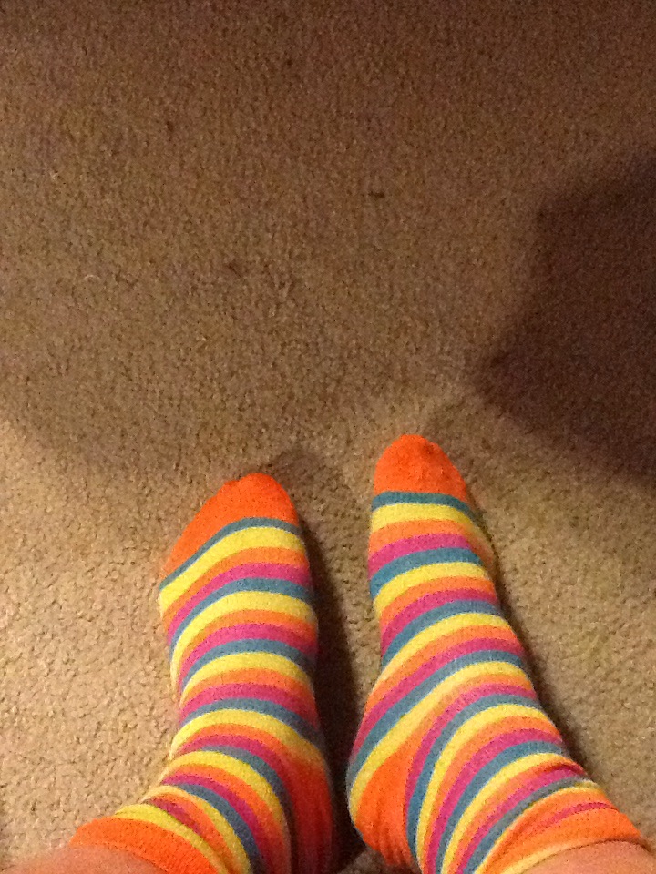 What fun! Good job brightening up winter while staying warm. They look like good read and/or writing socks.