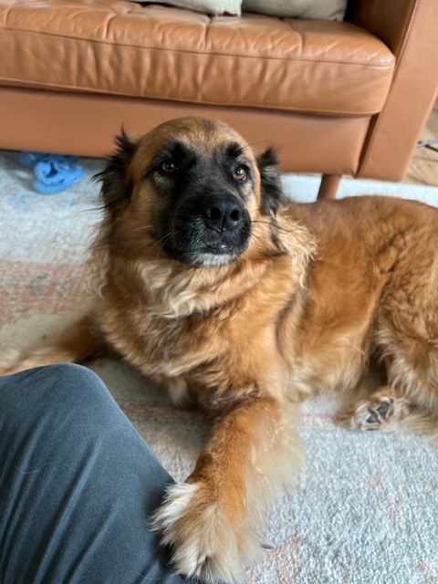 Enjoy your grand pup visit. I bet he/she misses the cat who played with him/her- Calm is good, too, though. LOL Primm is Shepard and Golden Retriever. Sweet and has all the fur shedding of a golden. The tail and lots of long hair.