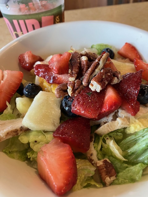 It also has pineapple and blueberries. Great poppyseed dressing.