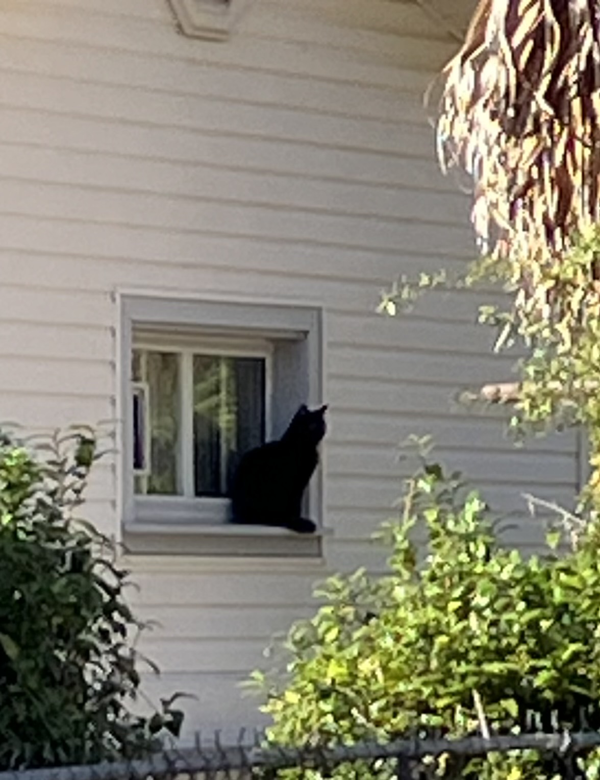 LOL! His name is Smokey- He lives next door to the office. He has a cat door in that window. LOL