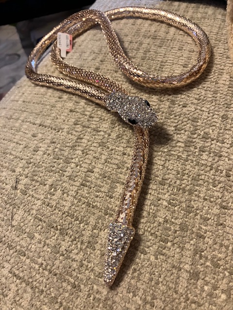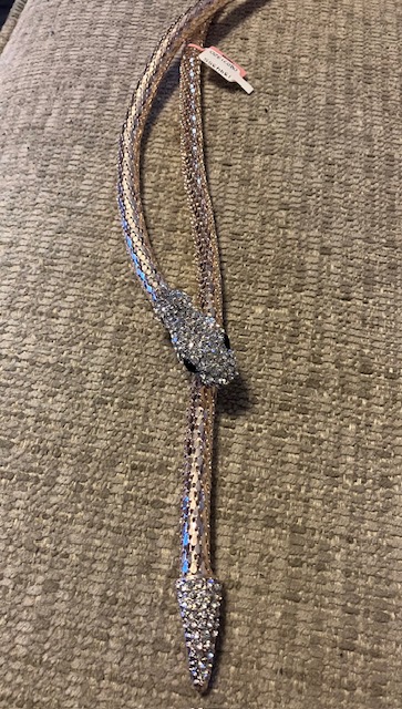 It is. It was a gift from a lady at one of the booths at a community event where I sell some of my books. She said I could have anything from her booth as a gift. When I picked it, she was surprised. LOL! I have another snake necklace that’s a petite silver snake wrapped around a 14 k gold chain. I call it my “lawyers are snakes” necklace. LOL