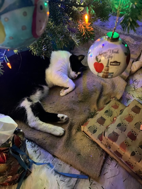He loved to “help” wrap Christmas presents and always thought we brought the tree inside for his personal use. He’d hang out there the whole season, but never, ever bothered the ornaments.
