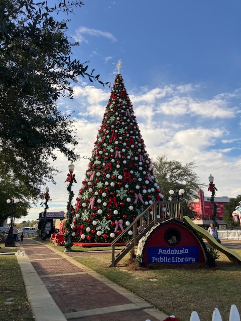Town square Andalusia, Alabama. I met my husband’s niece over there (1.5 hour drive from me) to go antiquing and have lunch on Saturday. It’s a really cute little town. We own a lot there on a canal but never got to build on it as the hubs got sick. Alas.